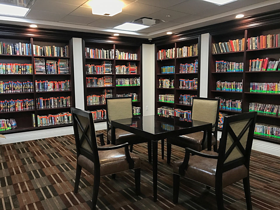 • Our library is located on the main floor. Resident may borrow books at any time. The Library works on the honor system so please return the books when you are finished with them. Contributions of books for our shelves are always welcomed.